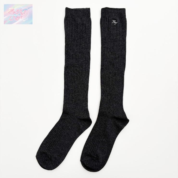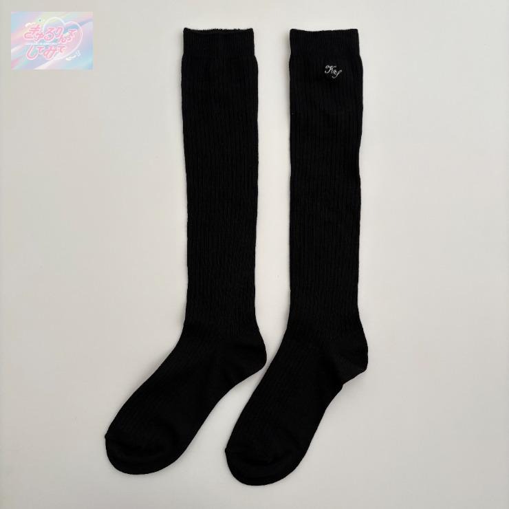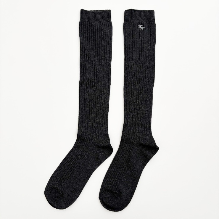 シンプルなリブデザインの靴下にロゴ刺繍デザインが特徴のハイソックスです◎