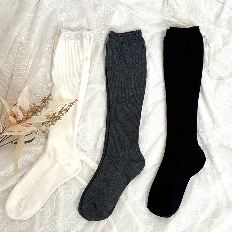 履き口ゆったり編みで締め付けを軽減する特徴の有るハイソックスです。