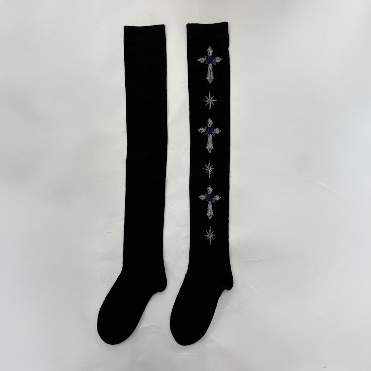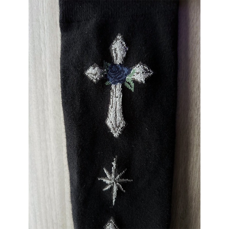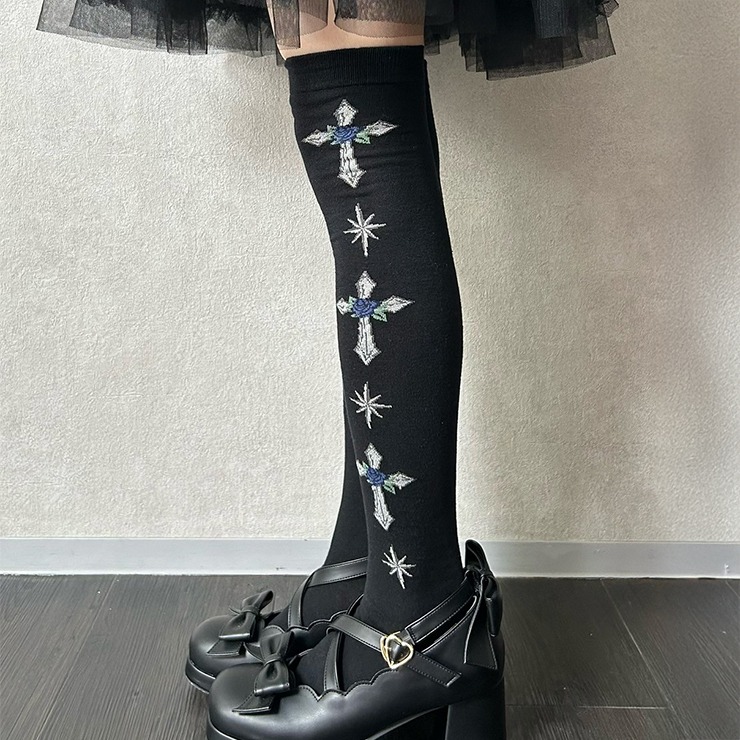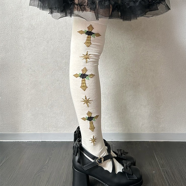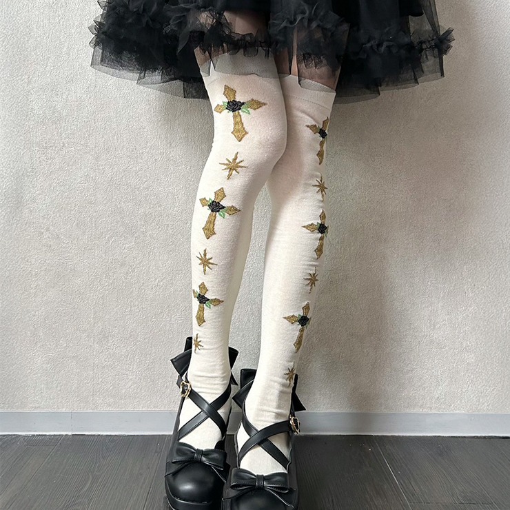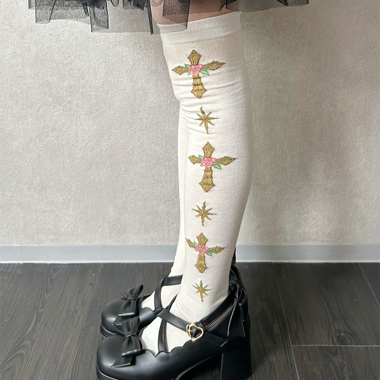 クロス薔薇デザインが特徴のオーバーニーソックスです◎
