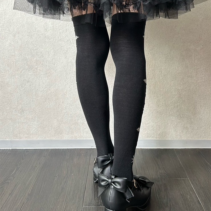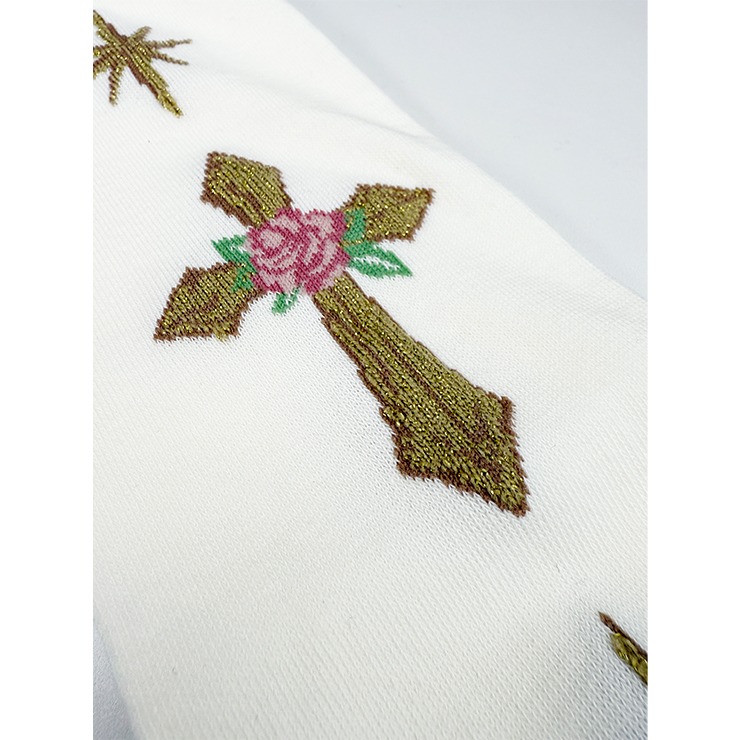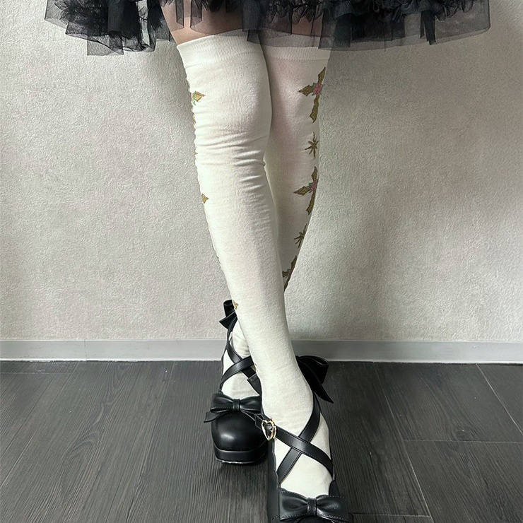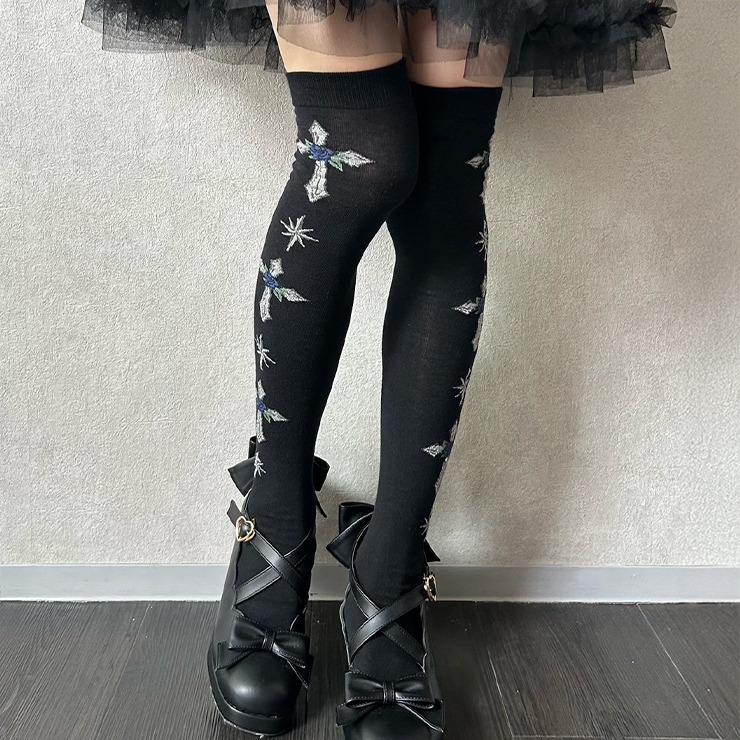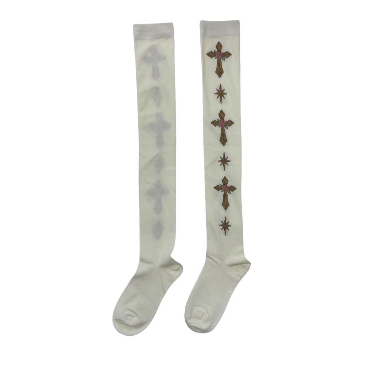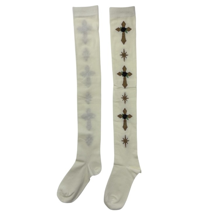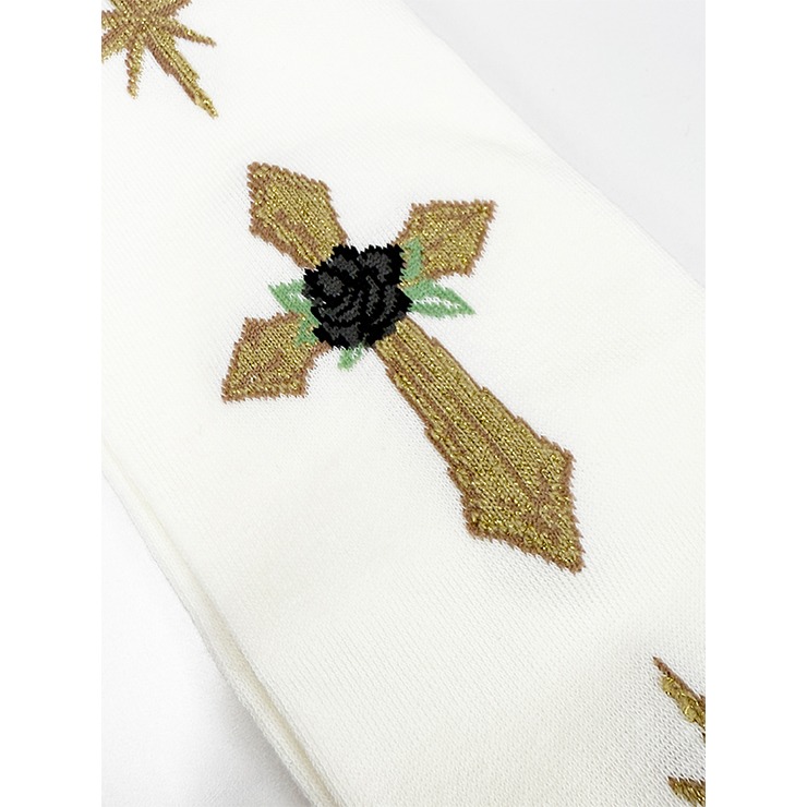 クロス薔薇デザインが特徴のオーバーニーソックスです◎