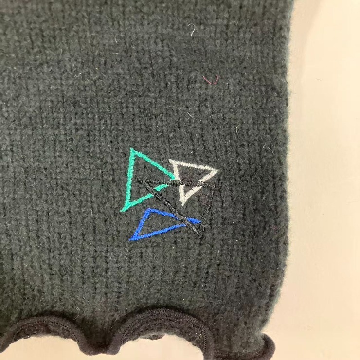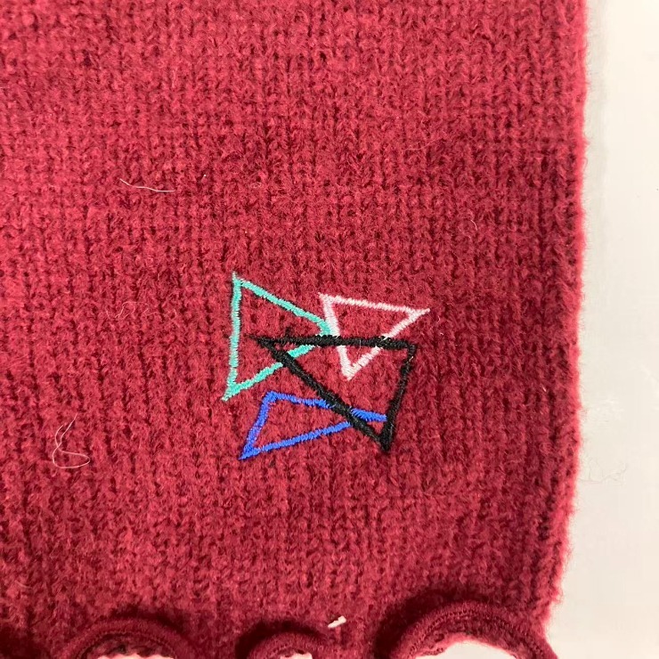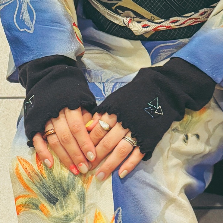 タッチ感の良いベロア風素材に三角幾何の刺繍がポイントのレッグウォーマーです。