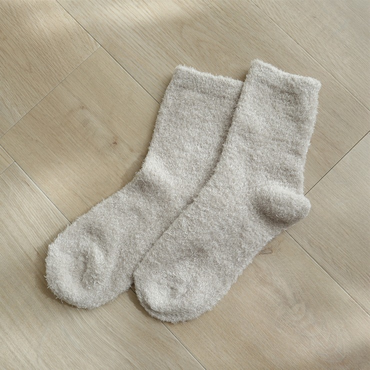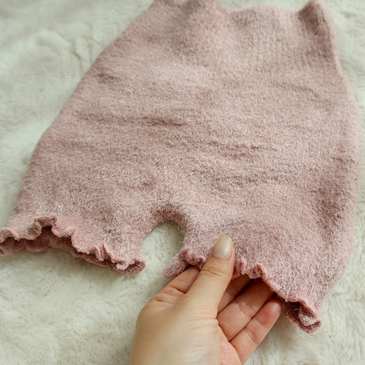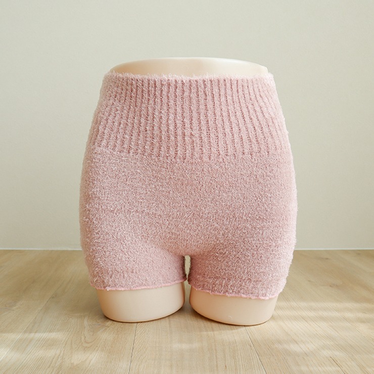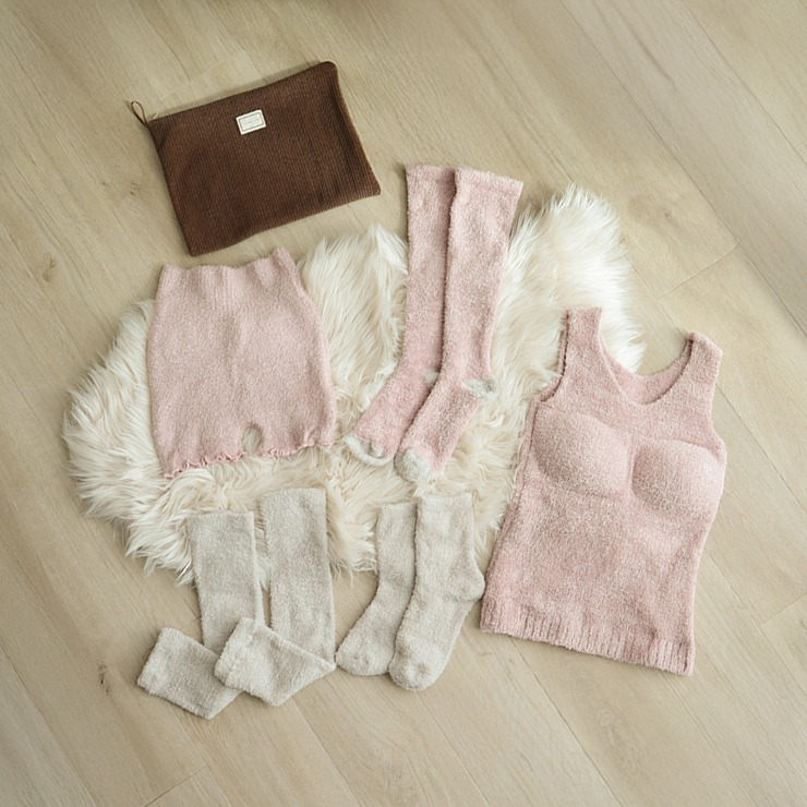 モコモコ素材のカップ付きインナーと腹巻付きパンツ、さらにモコモコ素材のレッグウォーマーと靴下、ソフトサポートソックスの5点入り。