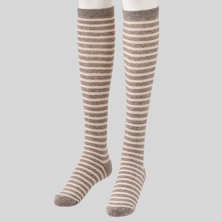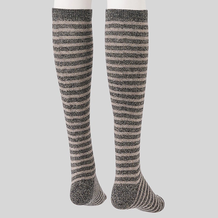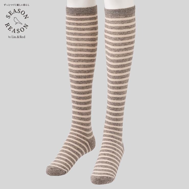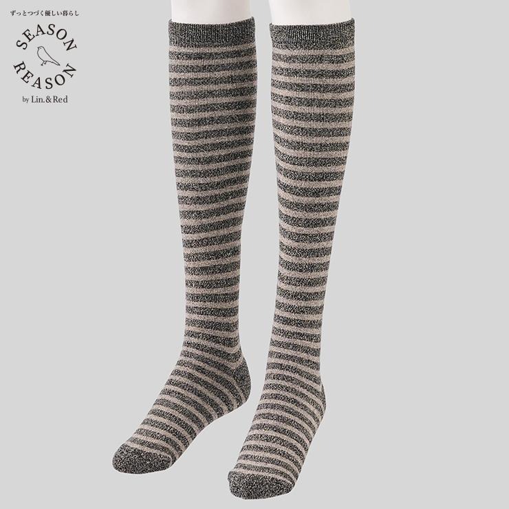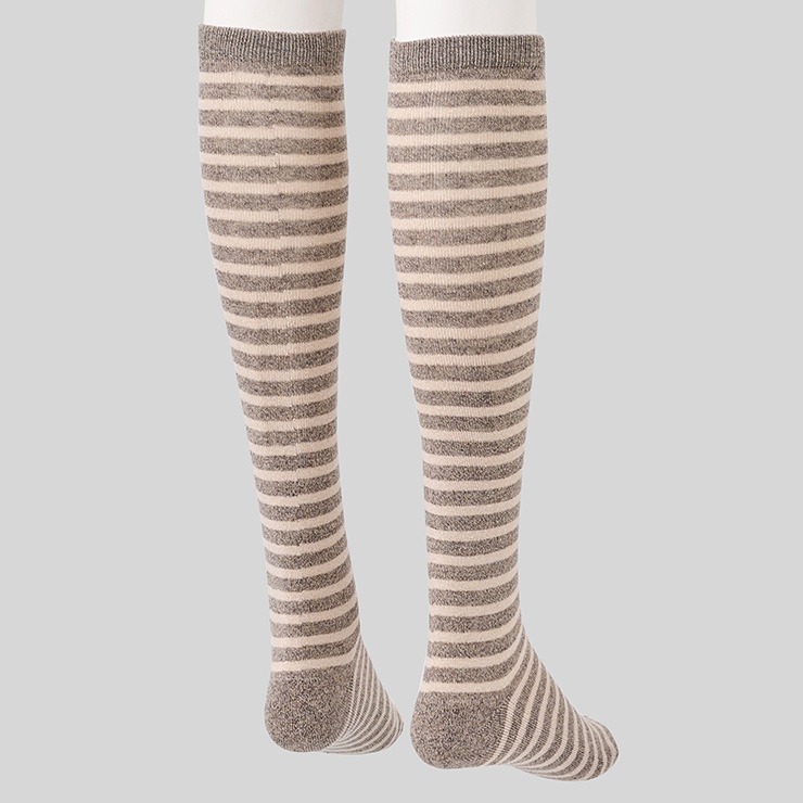ボーダー柄デザイン靴下の足底をパイル編みにしている靴下です。