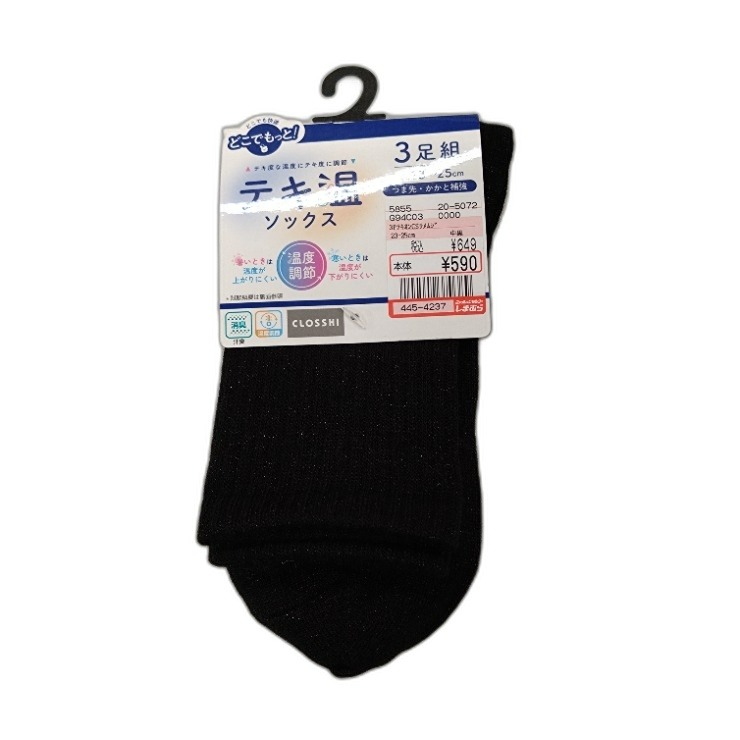 「どこでも快適」がコンセプトのどこでもっと!シリーズからテキ温3足組ソックスが登場。