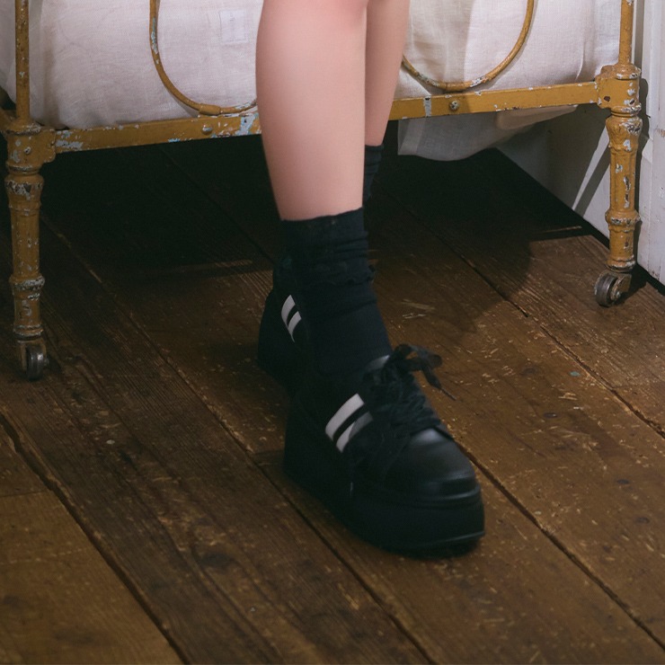 レディース クルーソックス(きゅるりんってしてみて) ブラック 213 ブラック 213