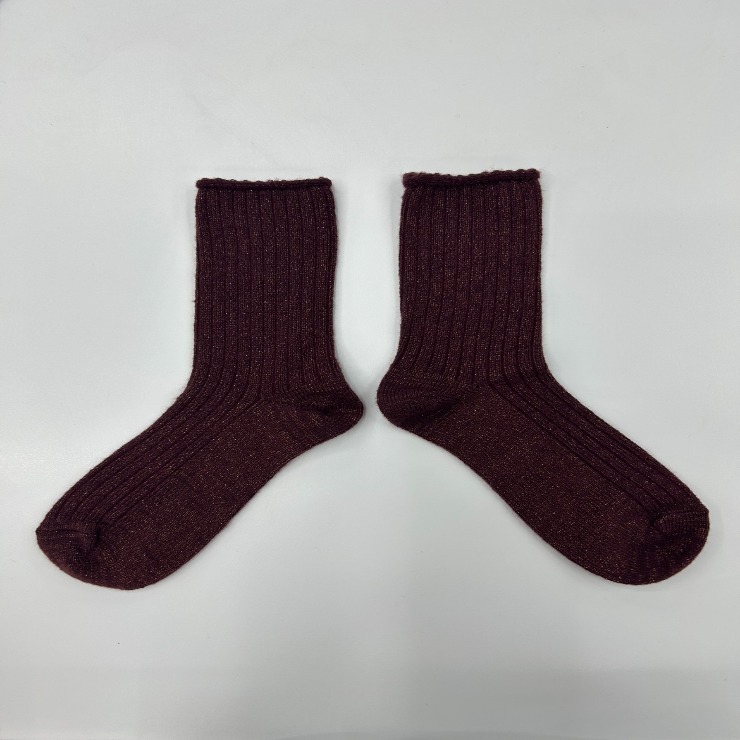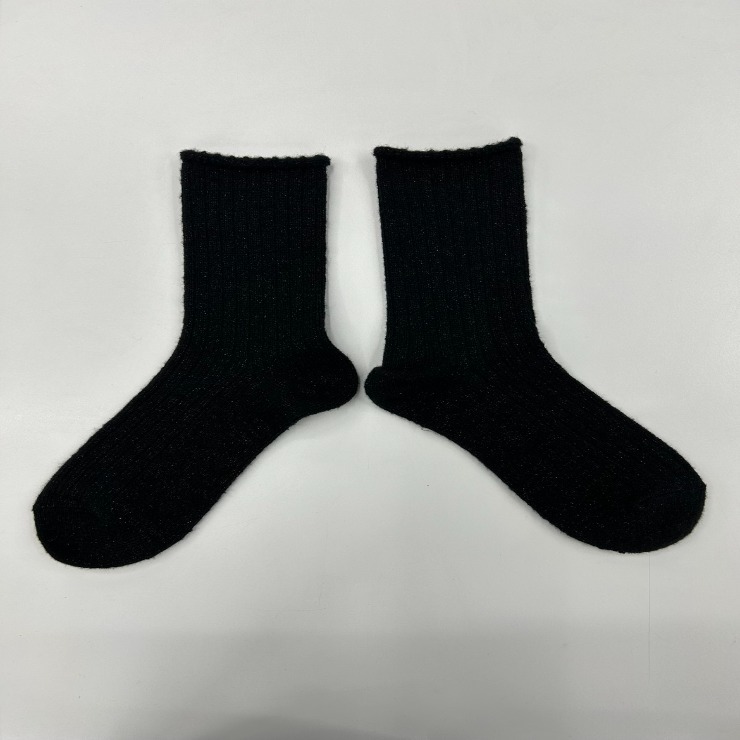 ふわふわした素材に、ラメが入っているソックスです。