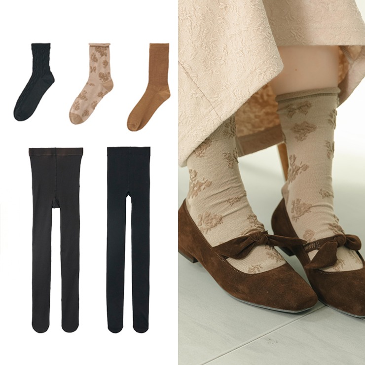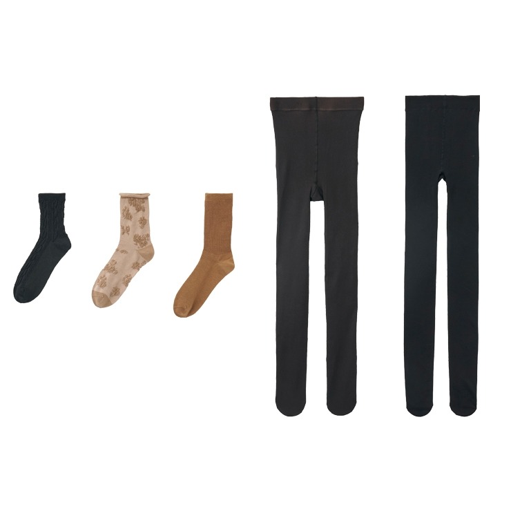 裏起毛タイツと素肌のようなタイツがメインで、このハッピーバックだけで秋冬の足元コーディネートが完結するsetになっています★