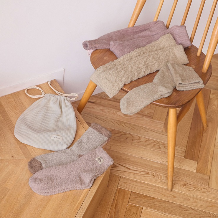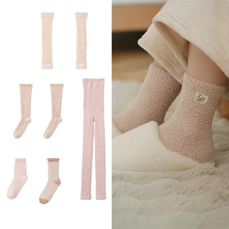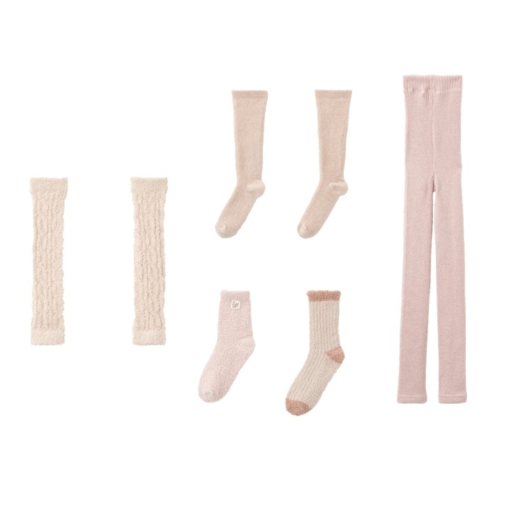 もこもこ靴下2足、もこもこレッグウォーマー、ソフトサポートハイソックス、ソフトサポートレギンスが入っていて、お家時間を楽しめるsetです♪