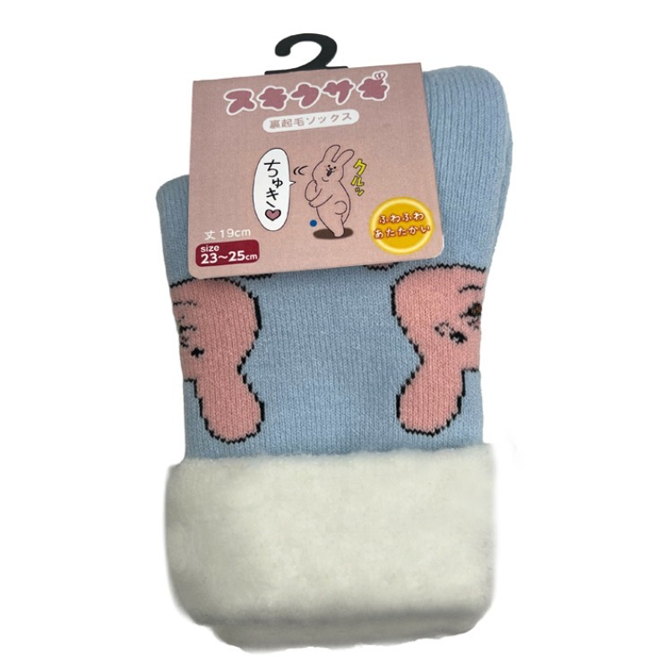 レディース クルー丈 裏起毛ソックス(スキウサギ)