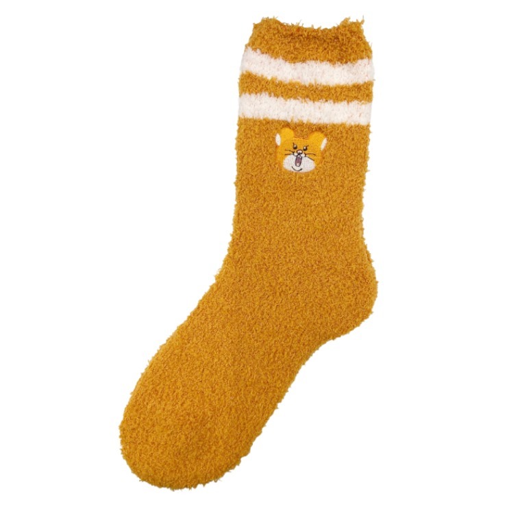 レディース クルー丈 ふわふわ刺繍ソックス(スキネズミ)