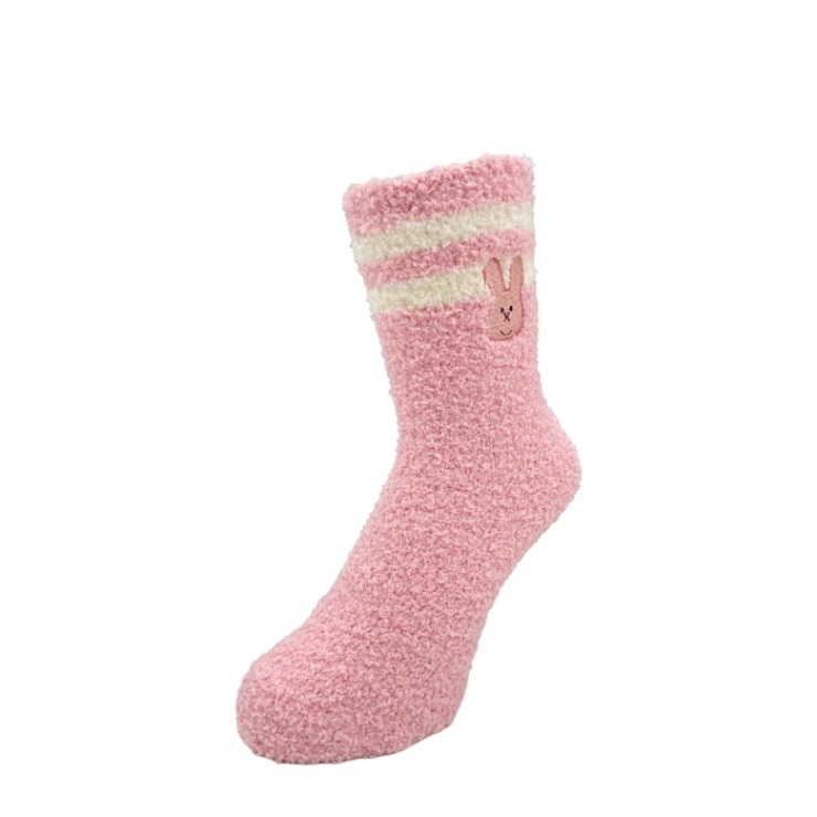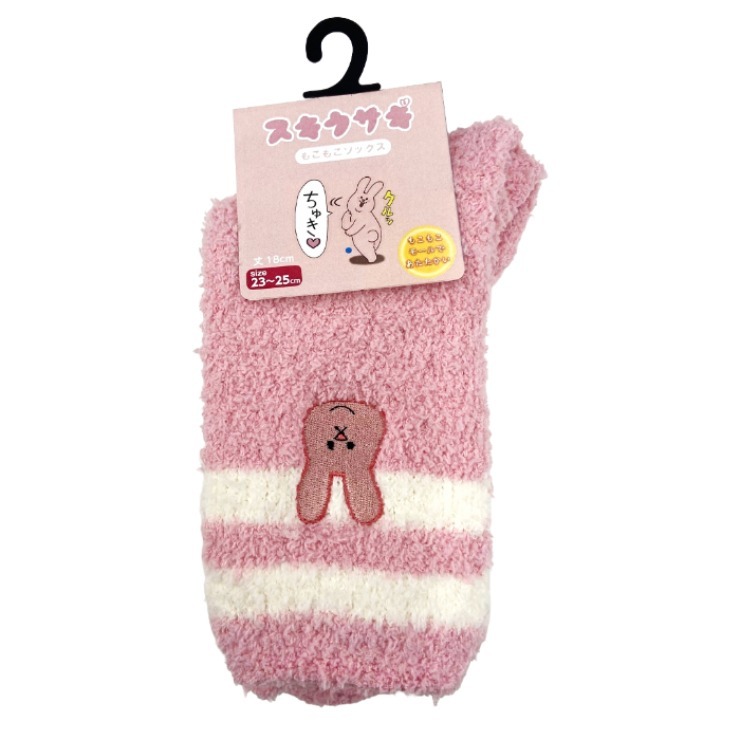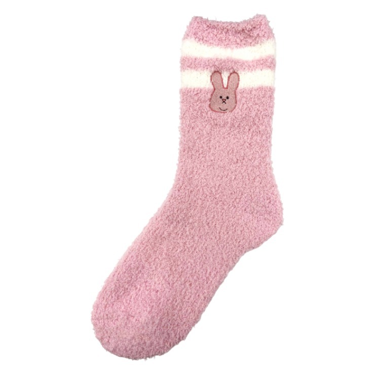 レディース クルー丈 ふわふわ刺繍ソックス(スキウサギ)