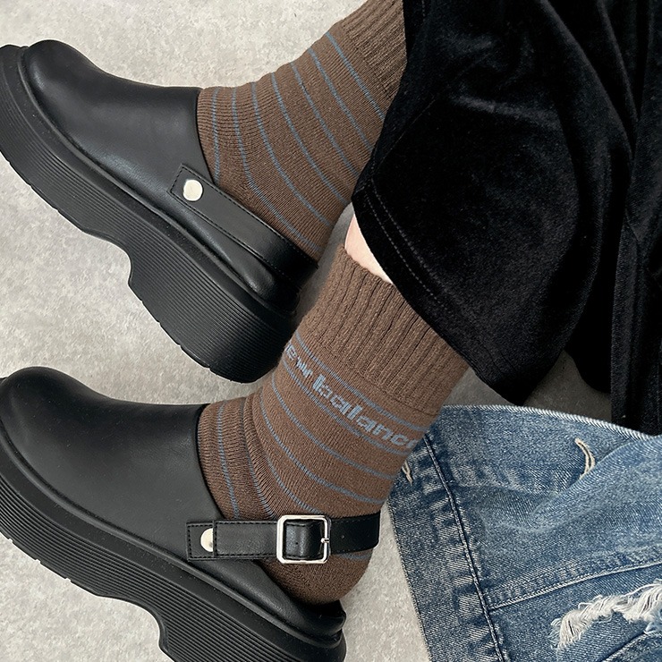 ボーダー柄とNewBalanceのロゴがコーディネートのアクセントに!