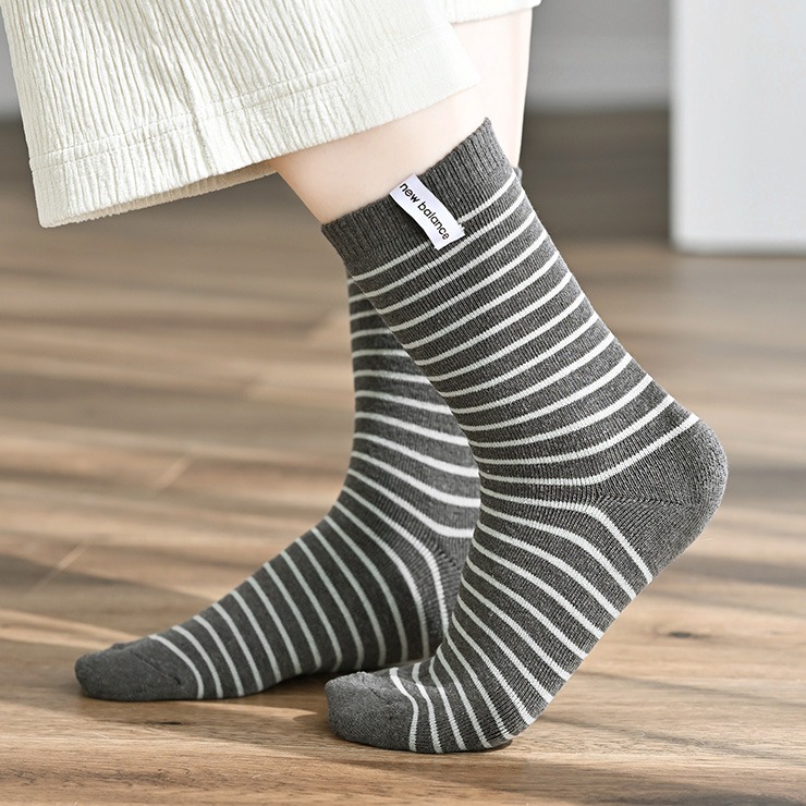 ボーダー柄とNewBalanceのタグがコーディネートのアクセントに♪