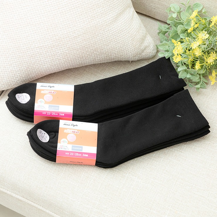 しまむらの「FIBER HEAT」からコラーゲン・ヒアルロン酸・セラミドの3つの化粧品由来成分を配合した"あったかモイスト"3足組裏起毛ソックスが登場。