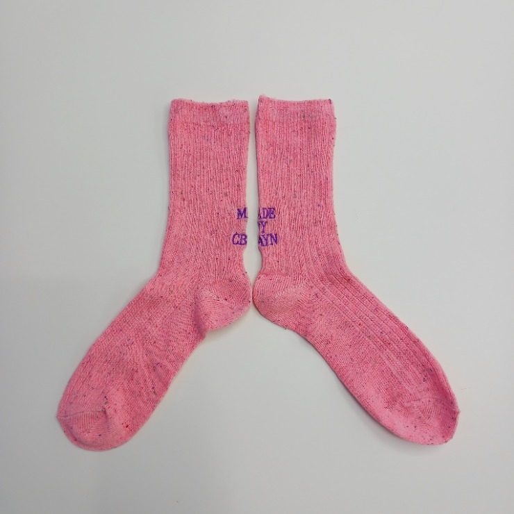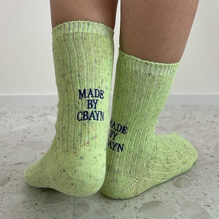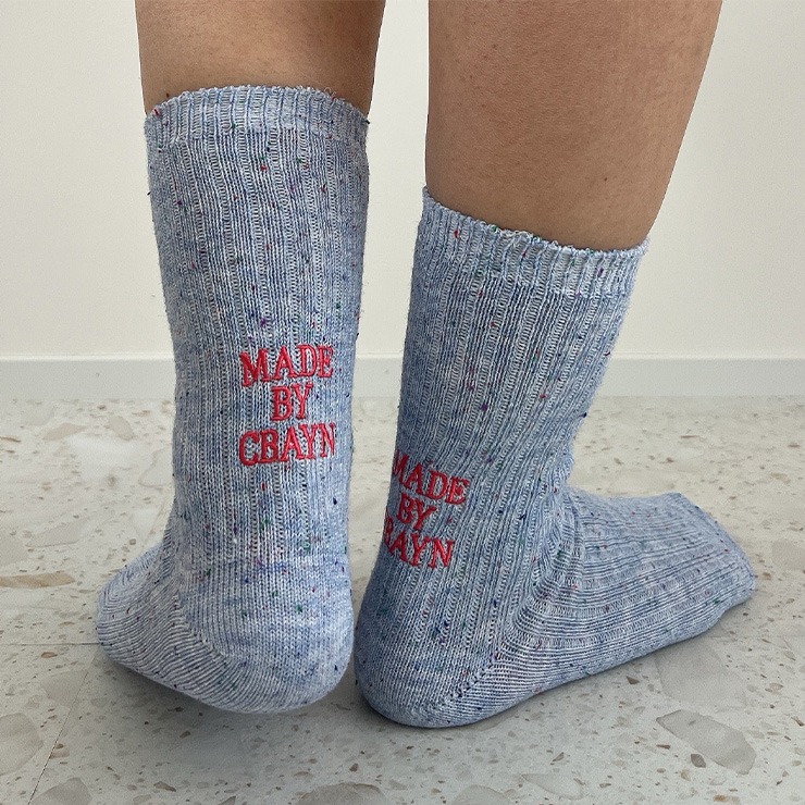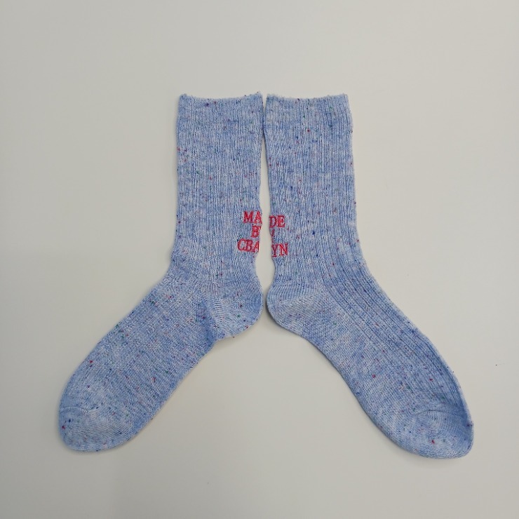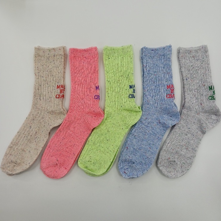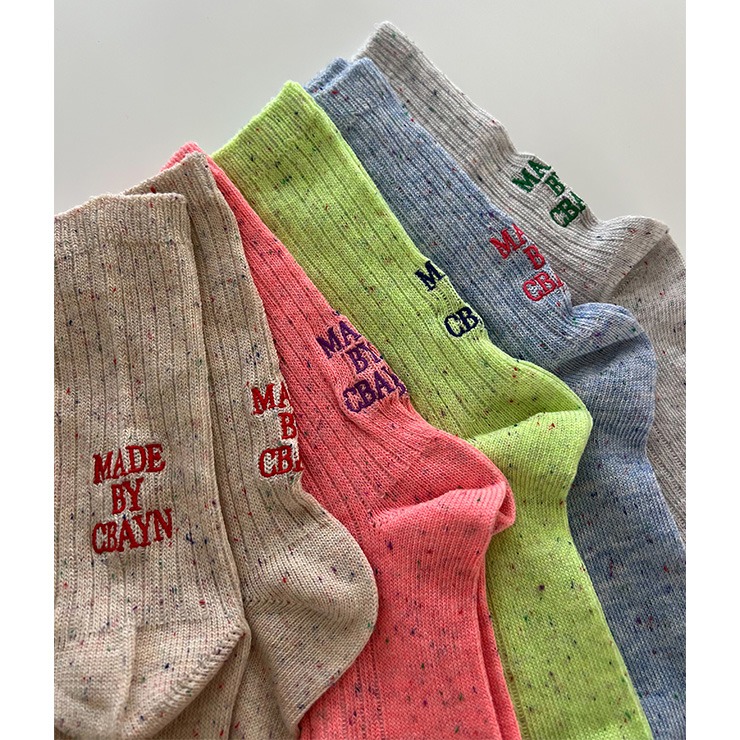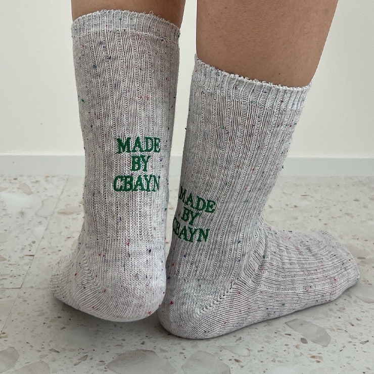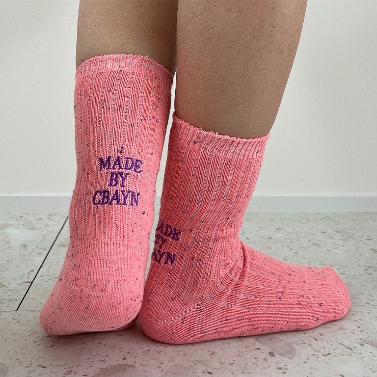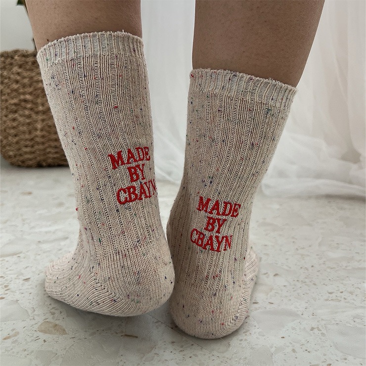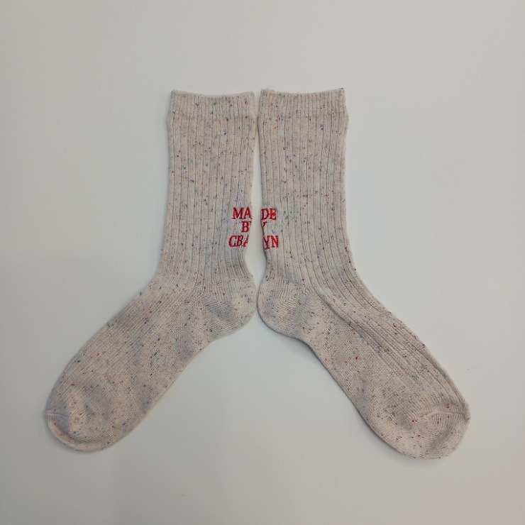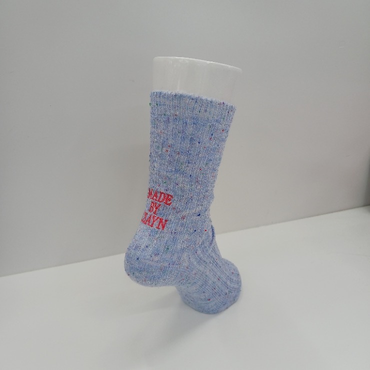 SNSでカラフルママファッションを発信しているインフルエンサー、ayanoさんとコラボした靴下が登場!カラフルなネップと、バック刺しゅうがポイントの靴下!