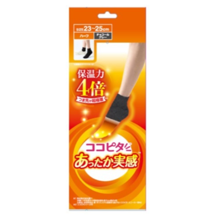足先に特殊な二層構造を採用。汗や湿気を吸って発熱し、その熱を逃がさず保温するのであたたかさが続きます。