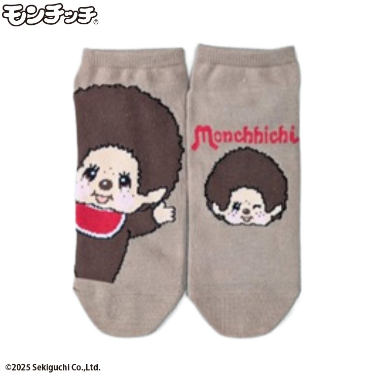 モンチッチのひょっこり柄とロゴ&フェイスウィンク柄の左右異柄ソックスです♪