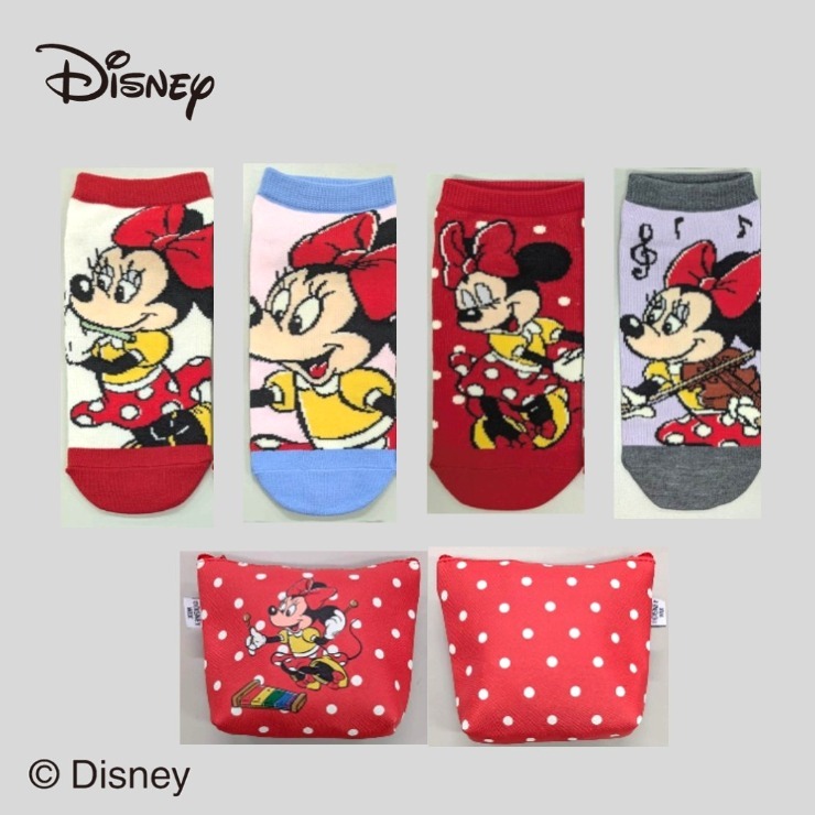 レディース 4足組ソックス ポーチ付き(ミニーマウス)