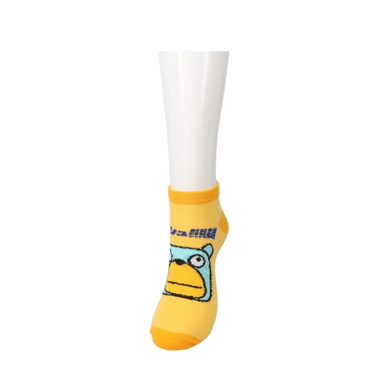 ムッシュ熊雄の顔が前面にデザインされたインパクト大のスニーカー丈の靴下です。