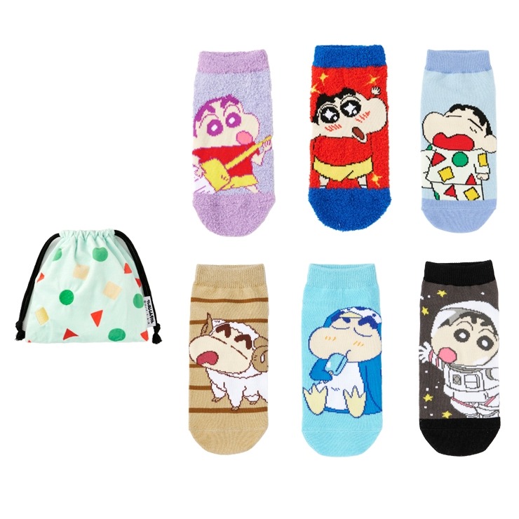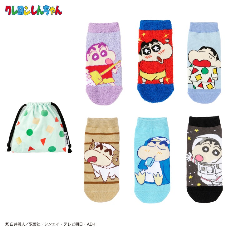 大人気【クレヨンしんちゃん】から巾着in6足入りの靴下が登場!