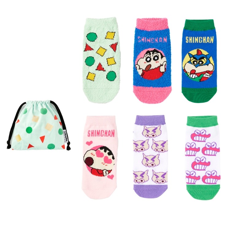 大人気【クレヨンしんちゃん】から巾着in6足入りの靴下が登場!