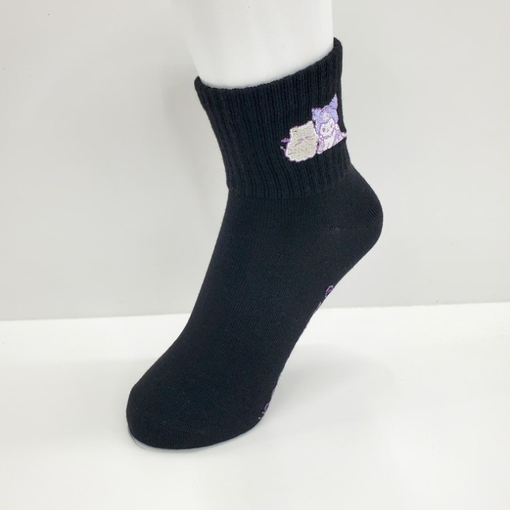 幅広いスタイルに合わせやすいワンポイント刺しゅうデザインがかわいいクォーター丈ソックス♪