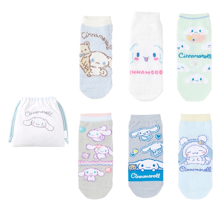 レディース キャラクターソックス ハッピーバッグ 6点セット(シナモロール)
