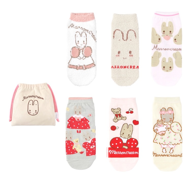 レディース キャラクターソックス ハッピーバッグ 6点セット(マロンクリーム)