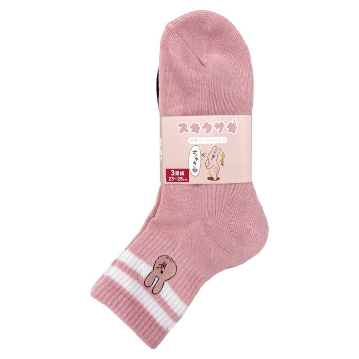 レディース クォーター丈 底パイル刺繍ソックス(スキウサギ)