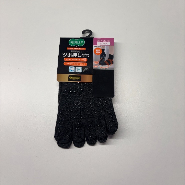 レディース 14cm丈 5本指ツボ押しサポートソックス(活き活きラボ×カラダファクトリー)