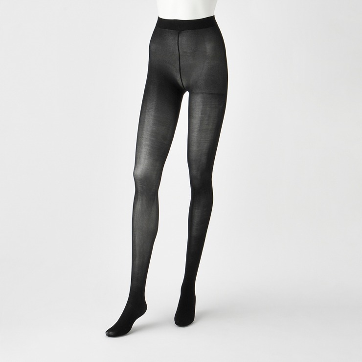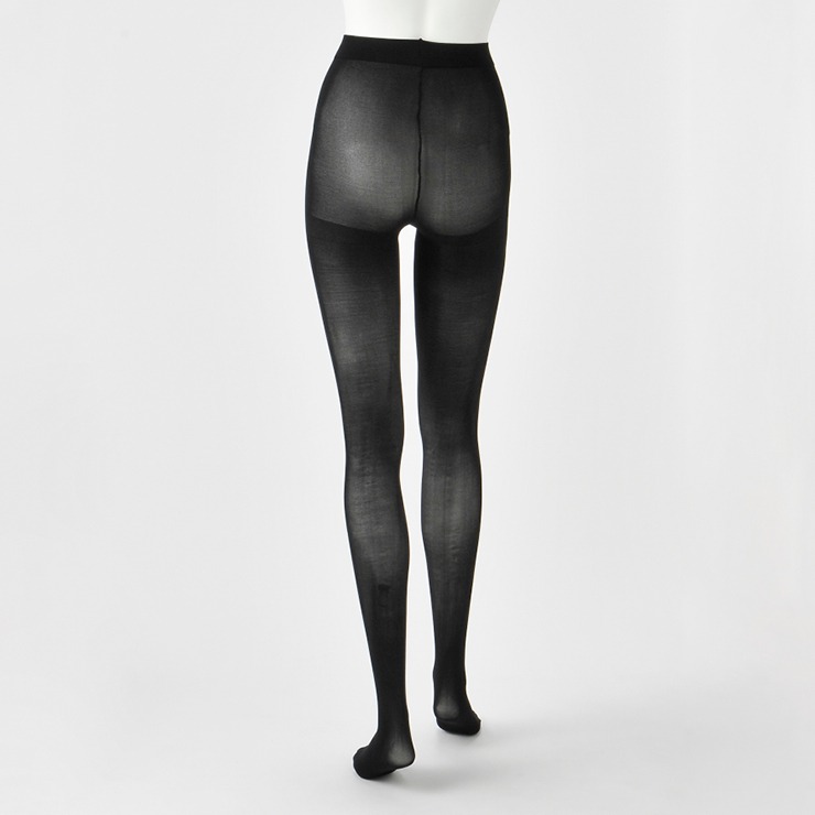 厚い時は温度が上がりにくく、寒い時は温度が下がりにくい、温度調節機能のある加工剤を使用したタイツです。