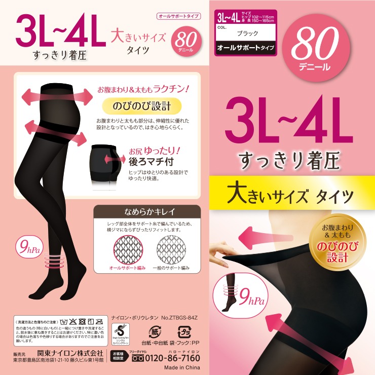 レディース タイツ 80デニール(3L-4L)すっきり着圧