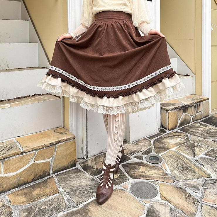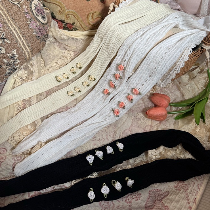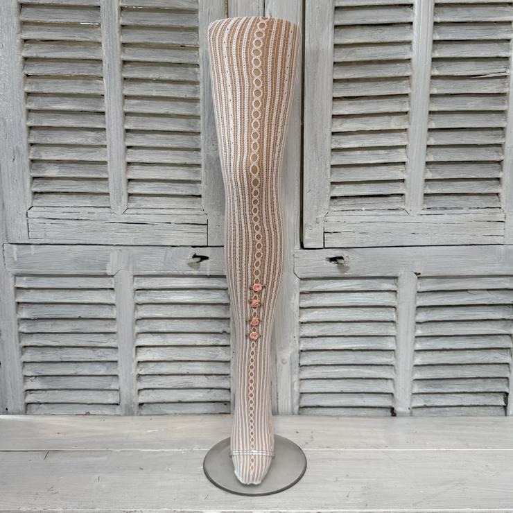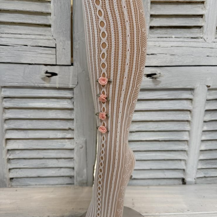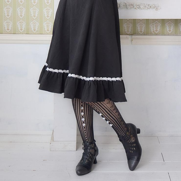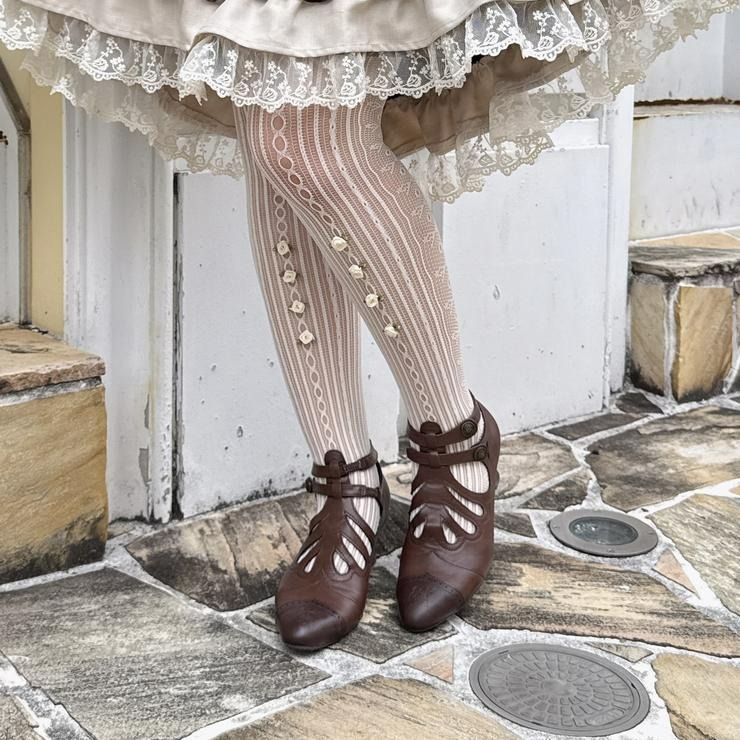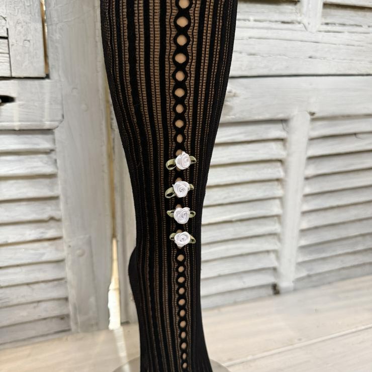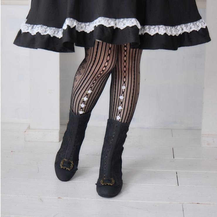 レース素材のタイツに巻き薔薇モチーフデザインが特徴です◎