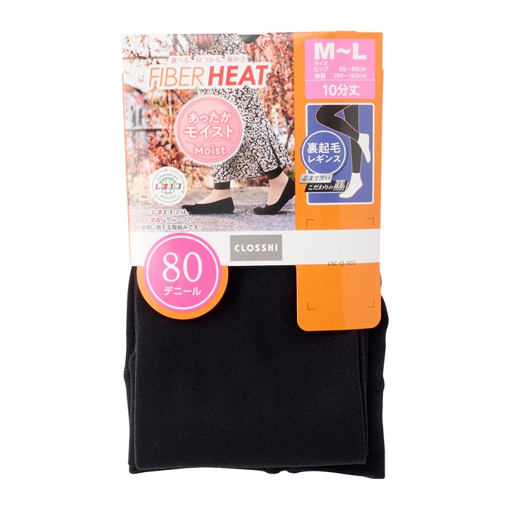 レディース 10分丈裏起毛レギンス 80デニール(FIBER HEAT あったかモイスト)S-M