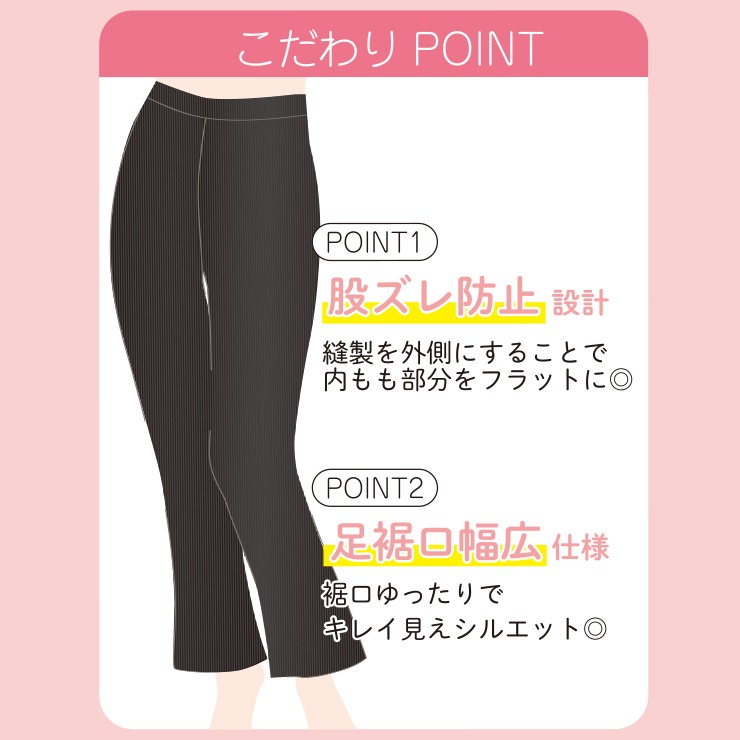 骨格診断アナリスト協会の上級アナリスト「山田 芙美子」さん監修アイテムのすっきり見えシルエットのフレアレギンスです。