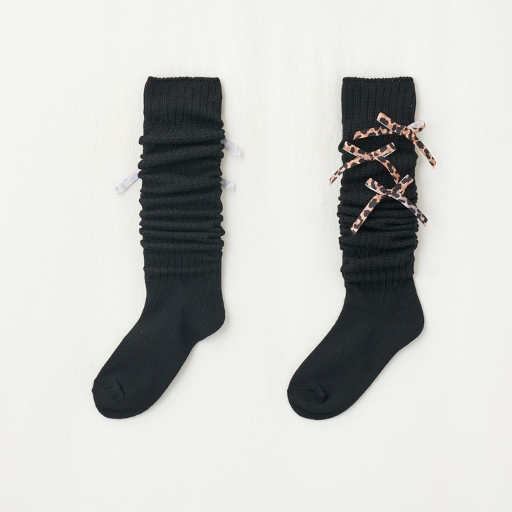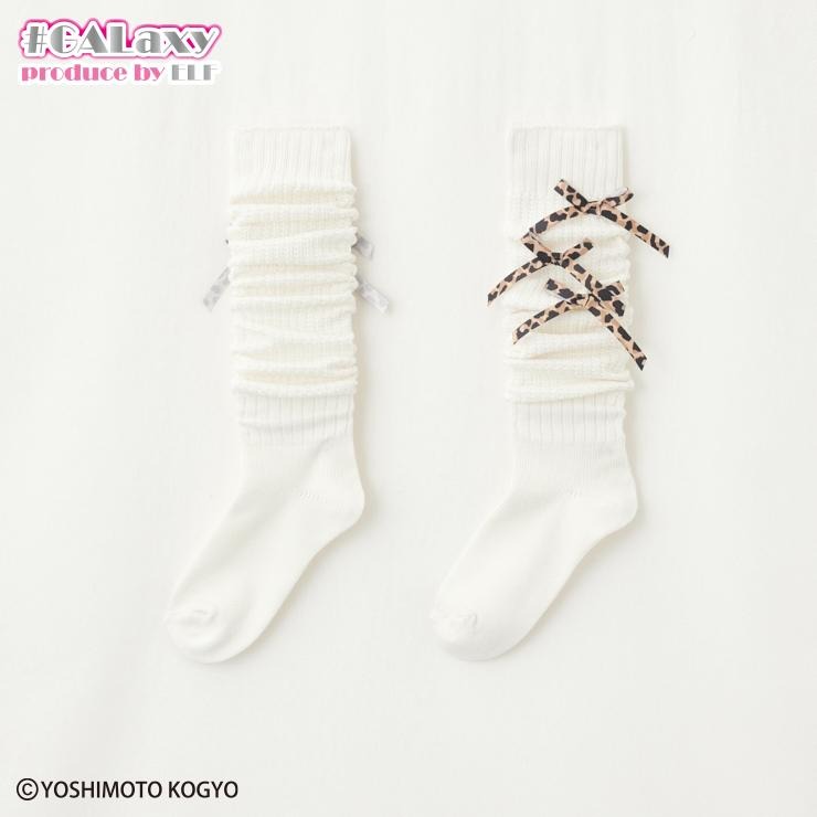 ヒョウ柄のリボンで荒川さんのようなかわいいギャルファッションになれちゃう靴下です☆
