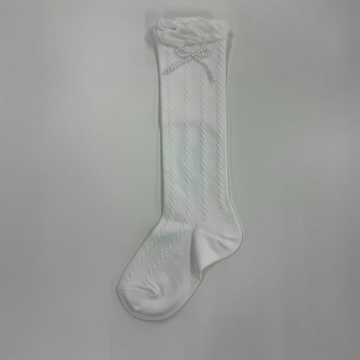 パールのリボンがついたとっておきの日にぴったりなハイソックスです。