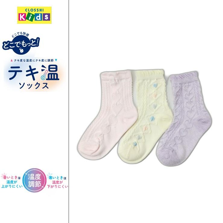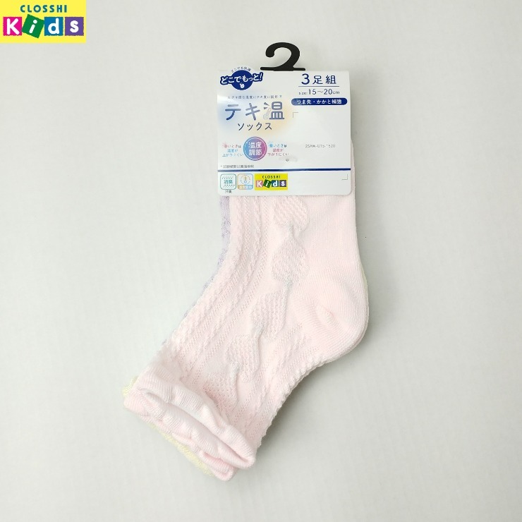 キッズ 3足組クルーソックス(15-20cm・どこでもっと!)