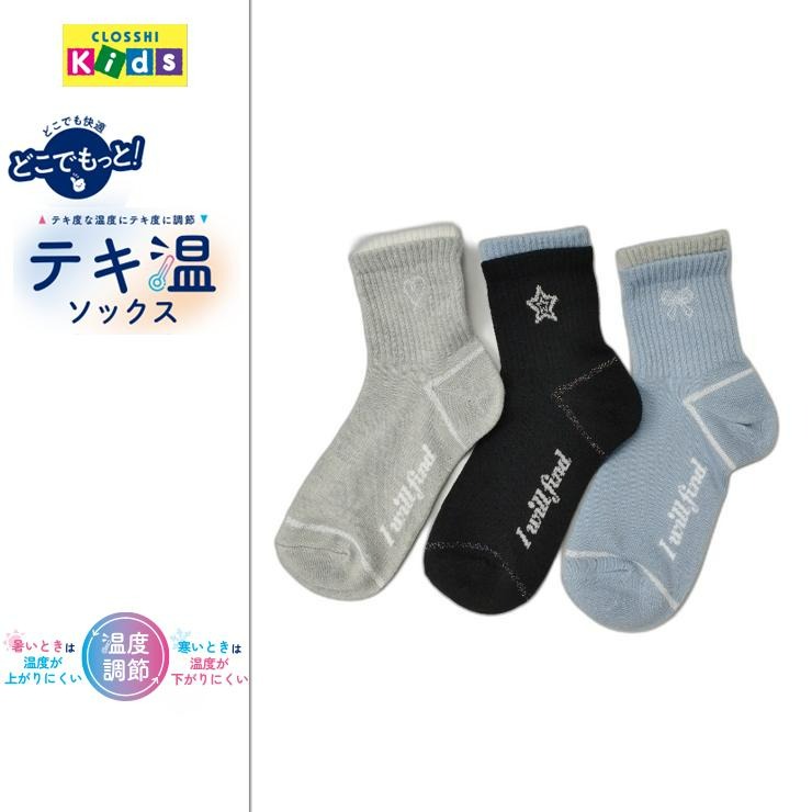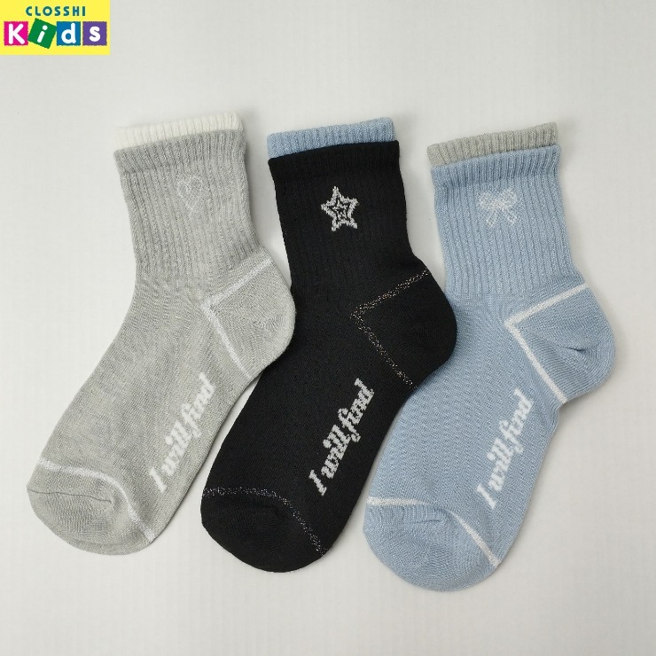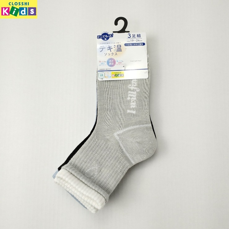 キッズ 3足組クルーソックス(19-24cm・どこでもっと!)