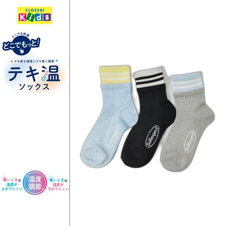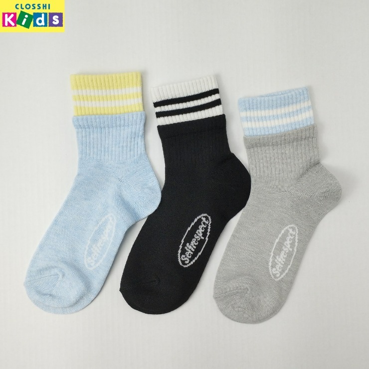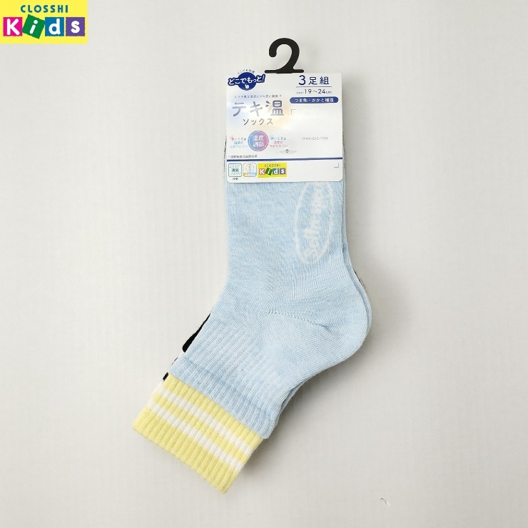 キッズ 3足組クルーソックス(19-24cm・どこでもっと!)