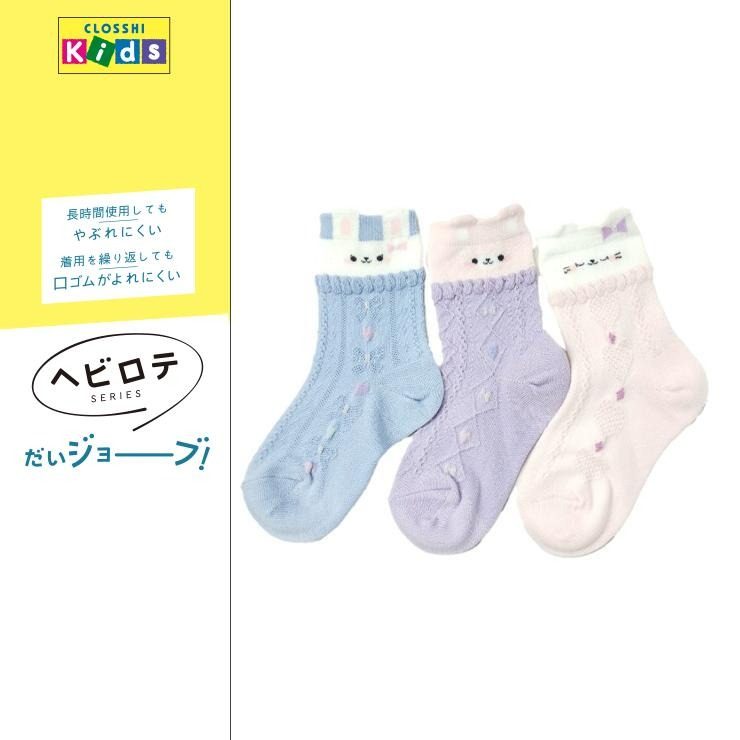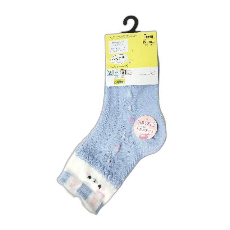 キッズ 3足組クルーソックス(15-20cm・ヘビロテ)