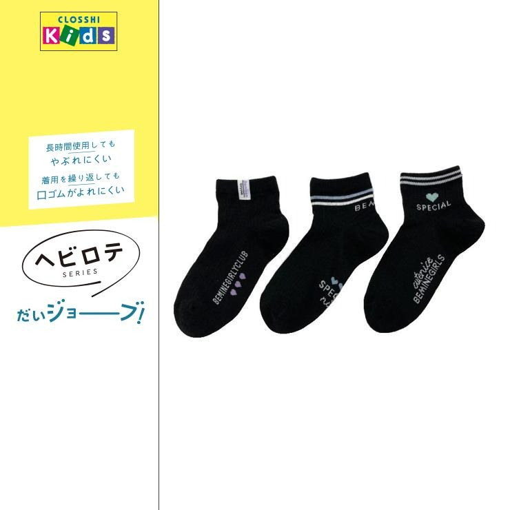 キッズ 3足組クォーターソックス(19-24cm・ヘビロテ)