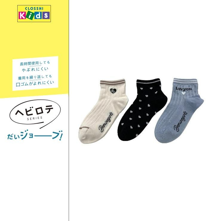キッズ 3足組クォーターソックス(19-24cm・ヘビロテ)