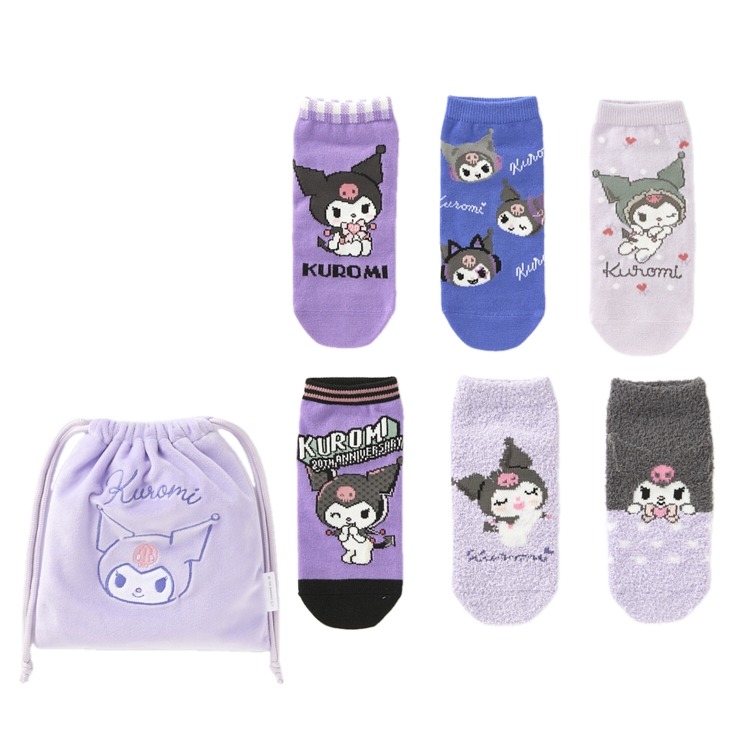 クロミの靴下6足セットが巾着に入ったセットです。