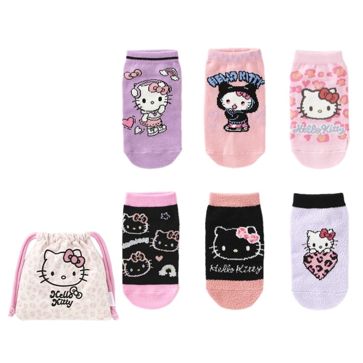 ハローキティの靴下6足セットが巾着に入ったセットです。