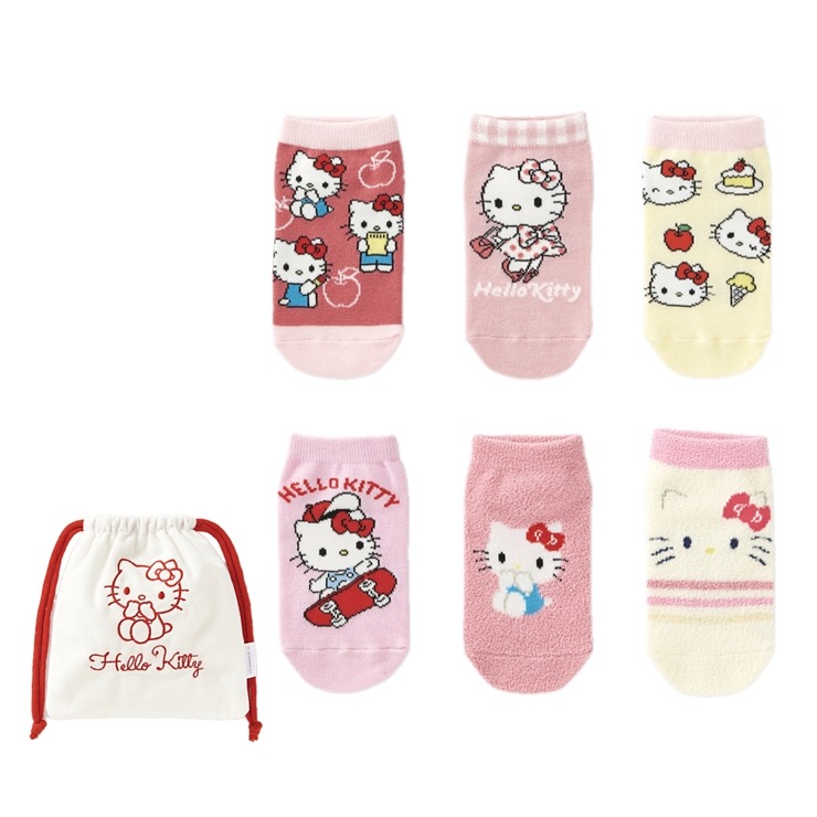 ハローキティの靴下6足セットが巾着に入ったセットです。