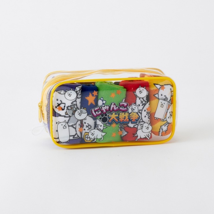 にゃんこ大戦争の靴下5足とクリアポーチのセットです。