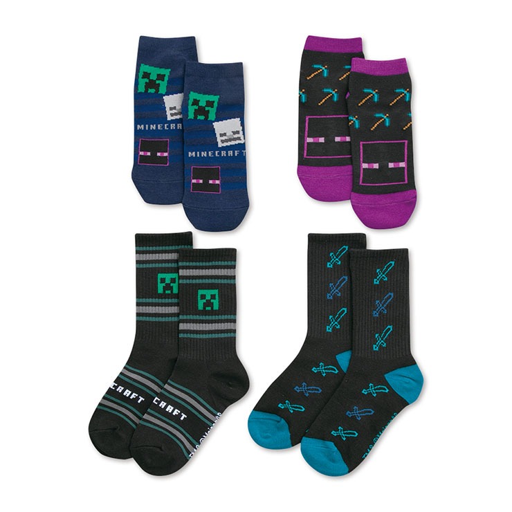 キッズ 4足組スニーカーインソックス・クルーソックス(19-24cm・マインクラフト)