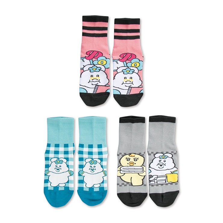 キッズ クォーターソックス 3足組(んぽちゃむ)