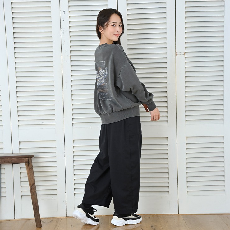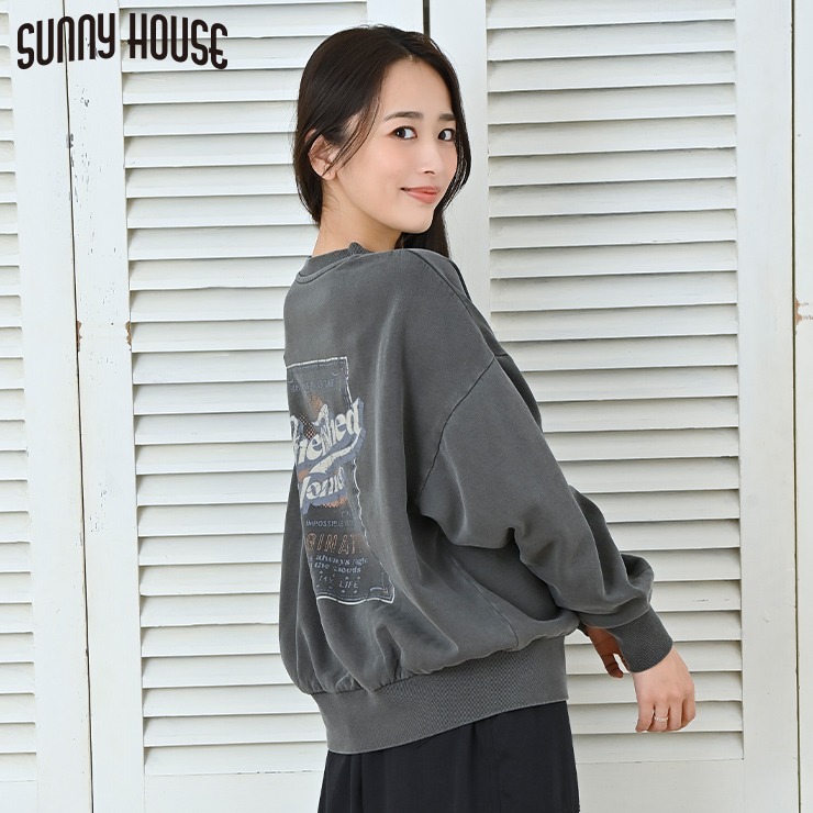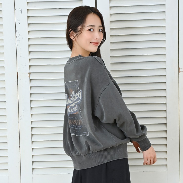 ヴィンテージ感のあるピグメント加工が魅力の裏起毛スウェットトップス。程よくゆとりのあるシルエットに、存在感のあるバックプリントが映える一枚です。デニムやワイドパンツと合わせればカジュアルに、スカートと合わせれば抜け感のあるスタイルも楽しめます。